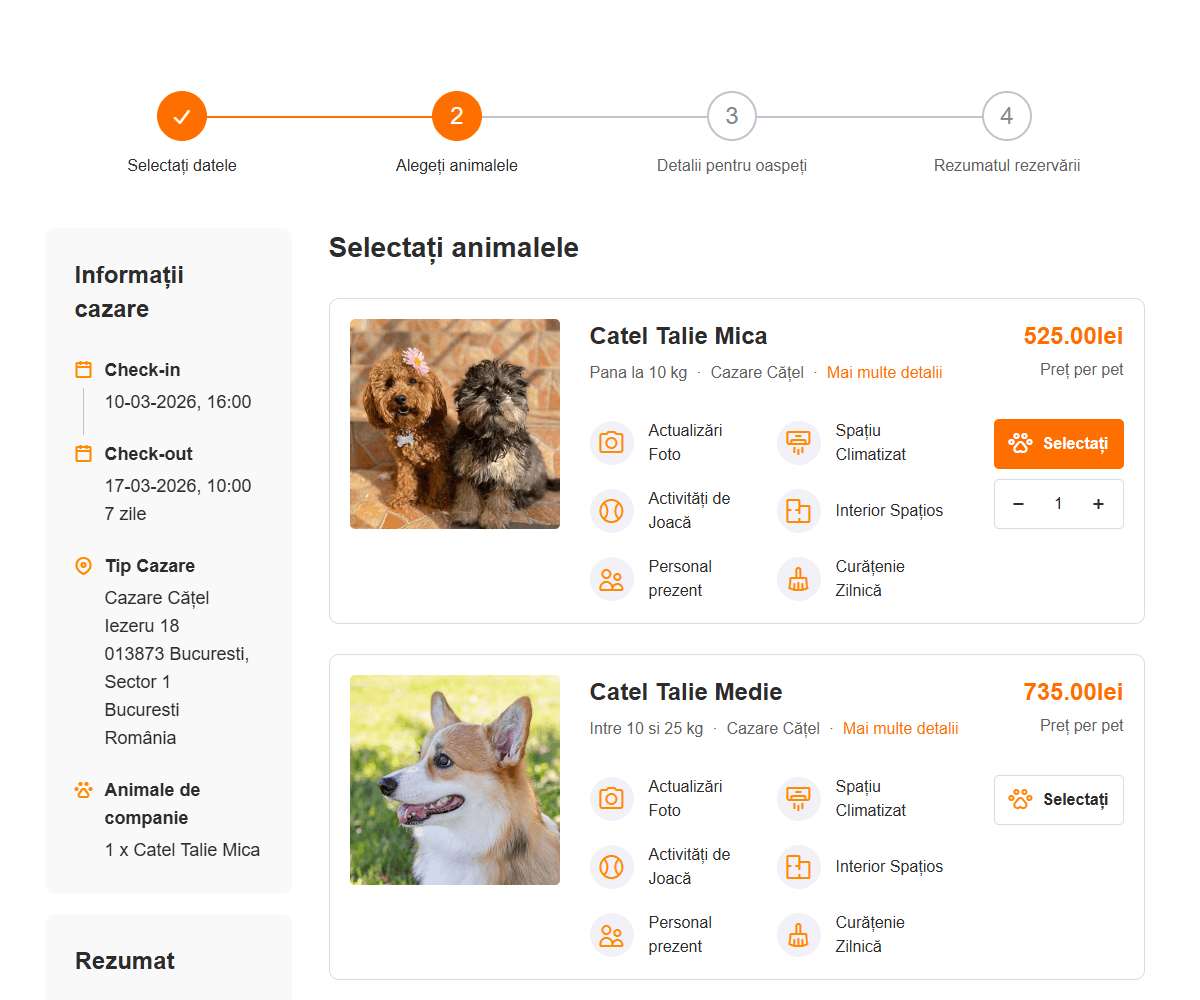 – Pentru mai multe animale, rezervarea se face individual pentru fiecare.